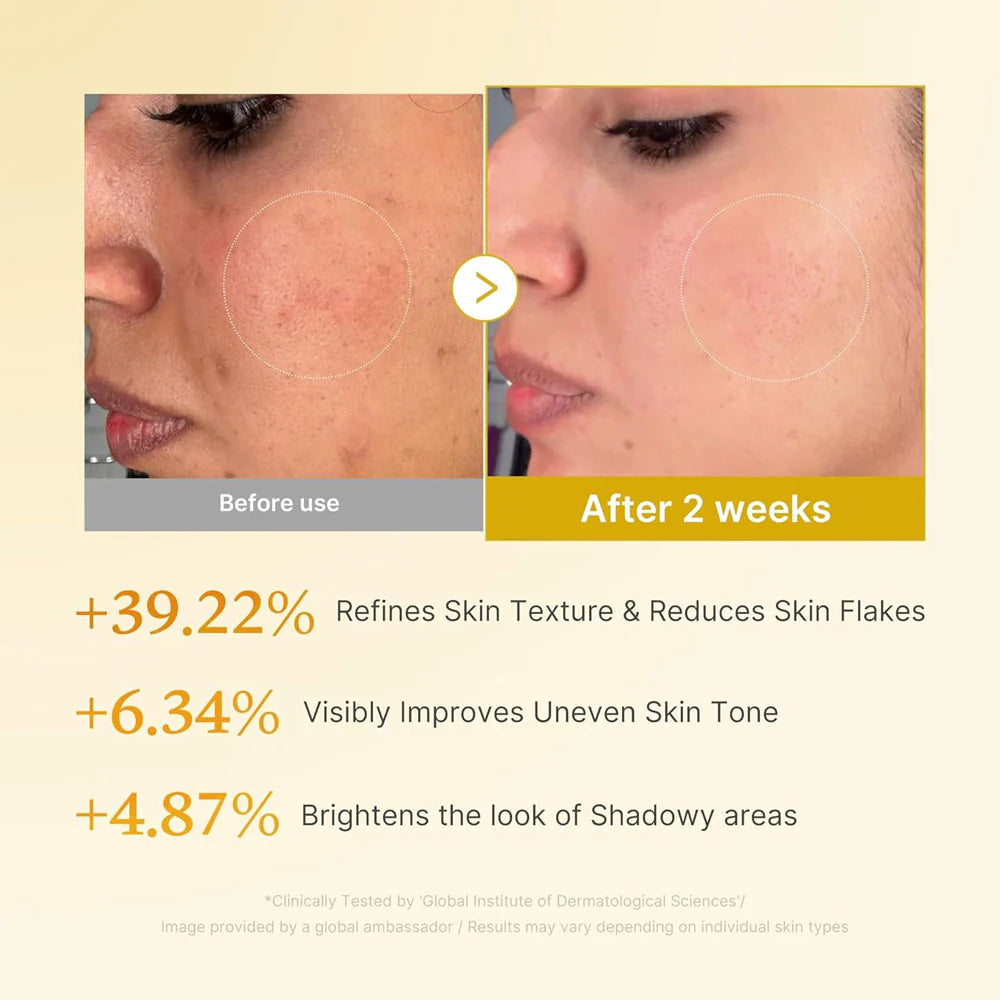 • Eficacia comprobada: Resultados visibles de una piel más clara y luminosa en 2 semanas.